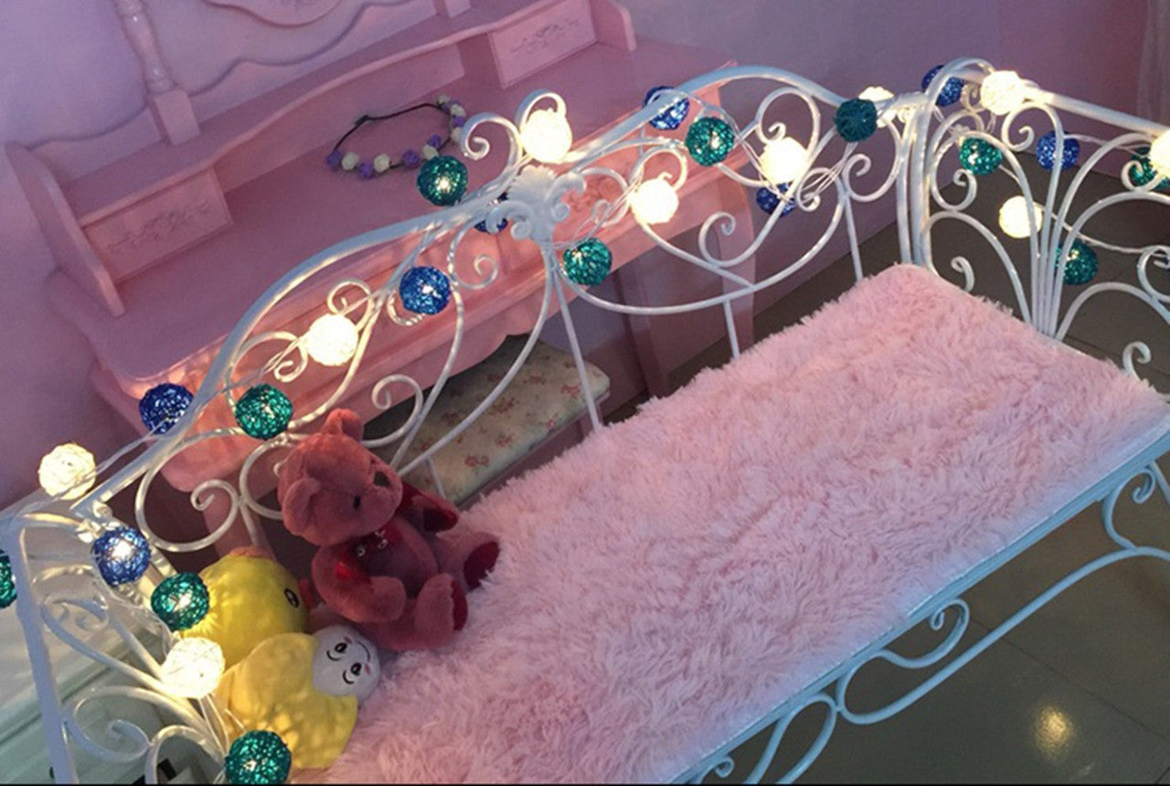 1 Set of Green n White 5cm Rattan Cane 50 Ball Battery Powered LONG 5m String Lights Christmas Gift Home Wedding Party Bedroom Decoration Table Centrepiece
