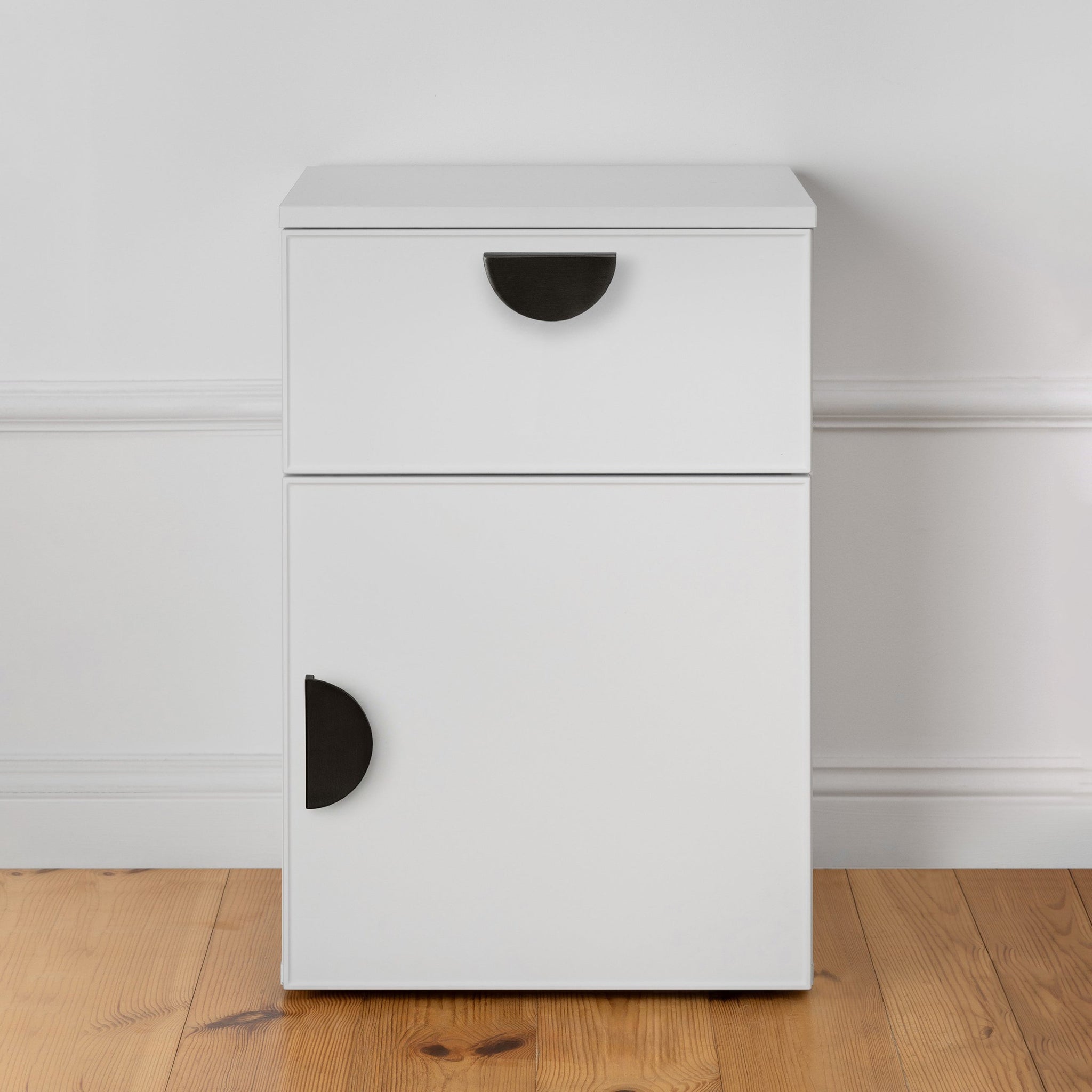 PORTO BEDSIDE TABLE - WHITE - SLIM - HALF MOON BLACK