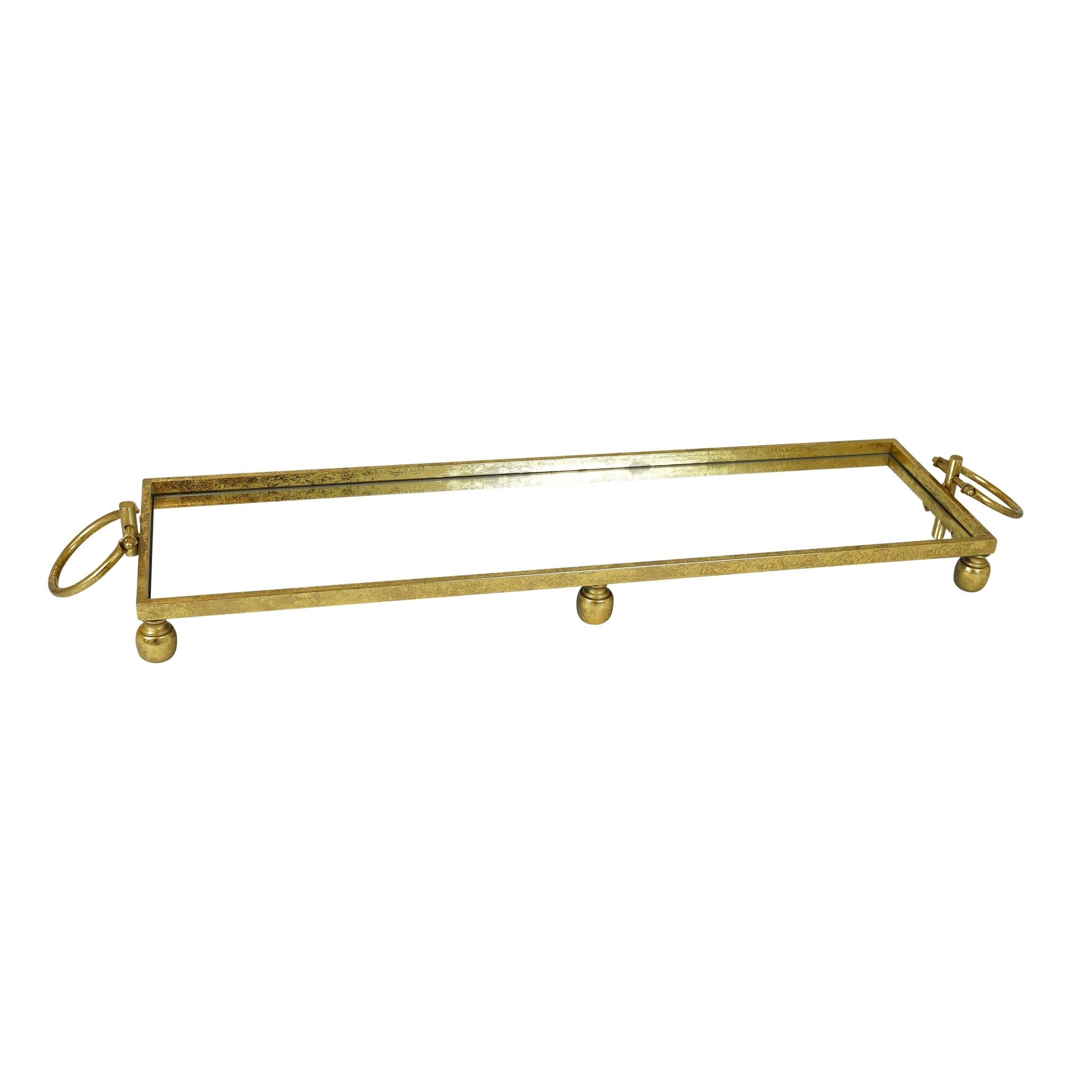 Eliza Large Rectangle Iron Mirror Tray with Handles - Gold