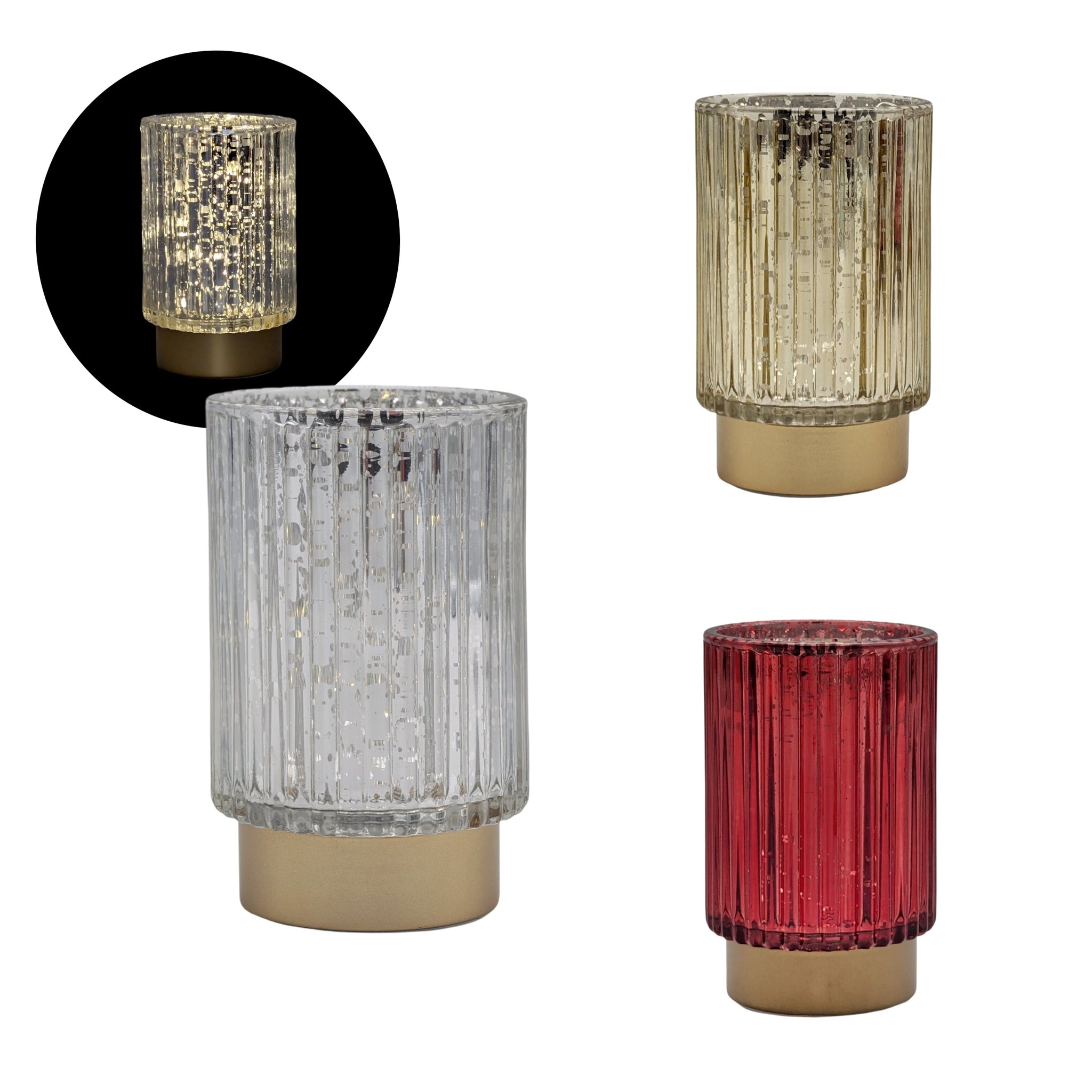 bulk 12 Light Up Metallic Glass Holder Assort 13cm