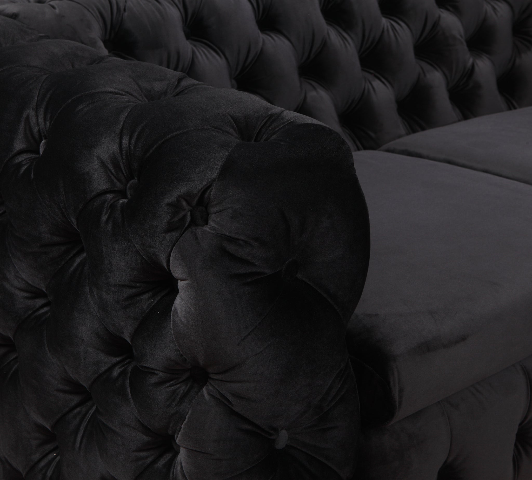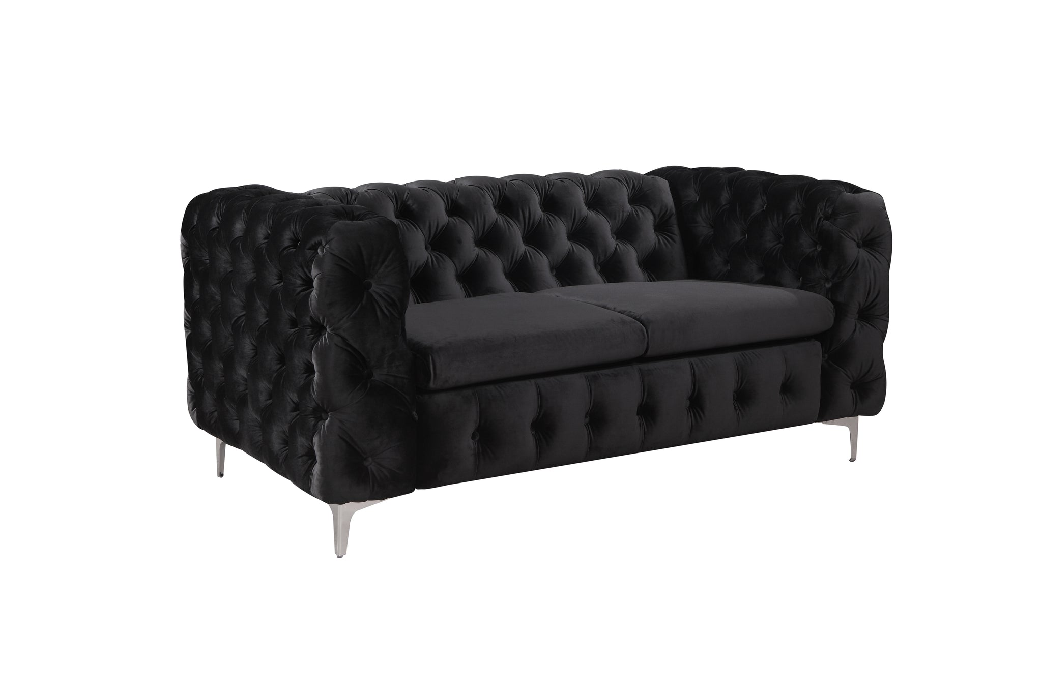 2 Seater Sofa Classic Button Tufted Lounge in Black Velvet Fabric with Metal Legs