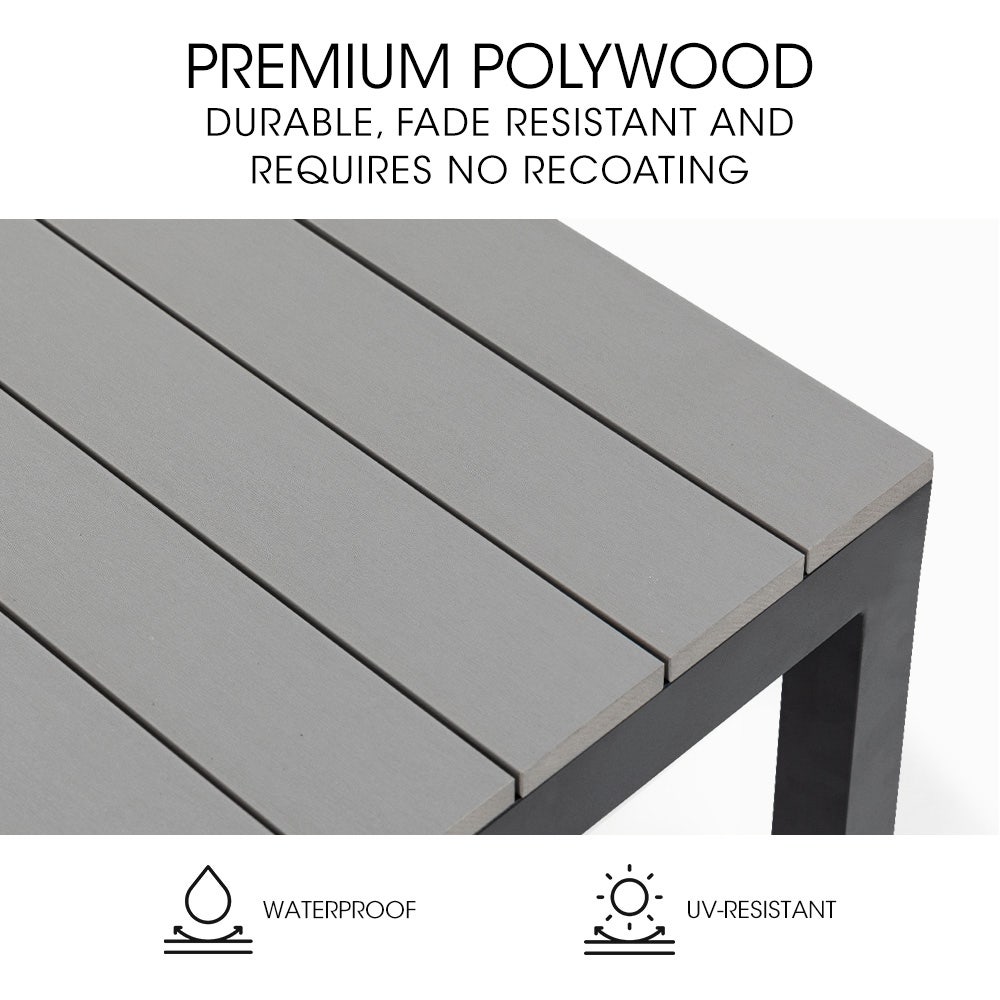 Elevate your outdoor lounging experience with the Fortia 4-Piece Outdoor Lounge Sofa Set, perfectly suited for any outdoor space. This stylish and supremely comfortable outdoor furniture includes premium ultra-thick easy-to-clean chair cushions, with high-quality machine-washable covers, and 2 durable weather-resistant polywood side tables.