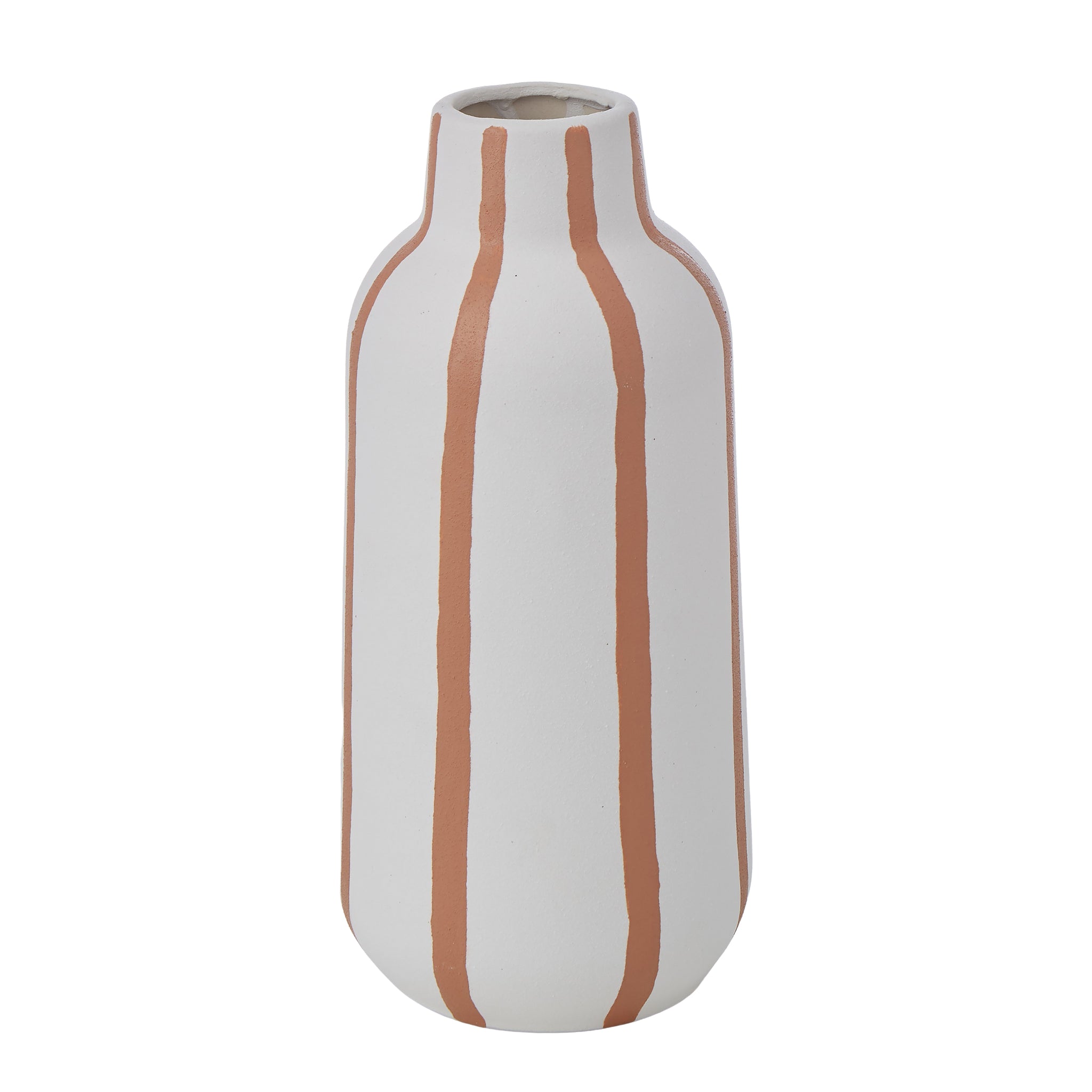 This Stripe Stoneware Vessel is both stylish and practical. Crafted from stoneware, it features an elongated body and tapered neck. Displaying a beige and terracotta striped appearance, it complements both classic and contemporary interiors alike. A visual statement piece, its organic shape will add an interesting addition to your home aesthetic.