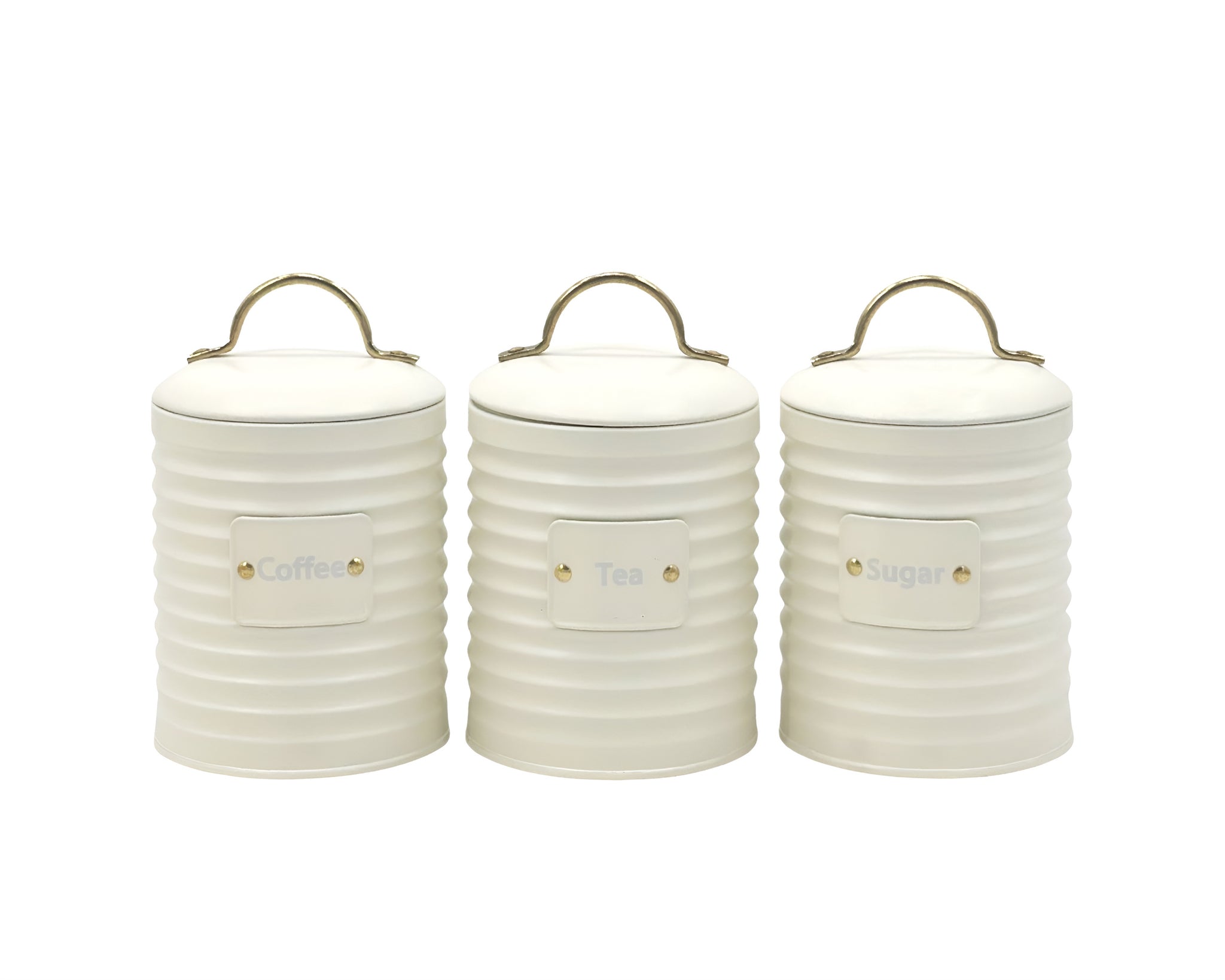 Set 3 Corrugated Metal Coffee Tea Sugar Storage Tins 10x17cm