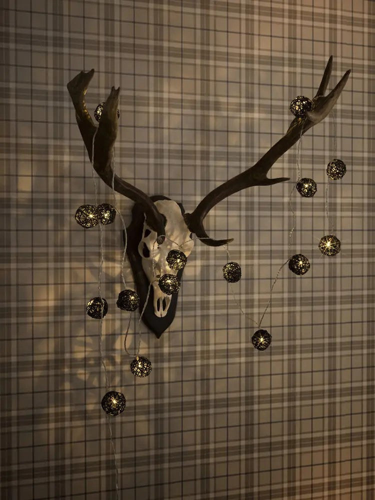 1 Set of Black 5cm Rattan Cane 20 Ball Battery Powered 3m String Lights Christmas Gift Home Wedding Party Bedroom Decoration Table Centrepiece