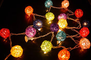 Multi Coloured Rattan Ball String Fairy lights