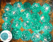1 Set of Turquoise Blue 5cm Rattan Cane 50 Ball Battery Powered LONG 5m String Lights Christmas Gift Home Wedding Party Bedroom Decoration Table Centrepiece