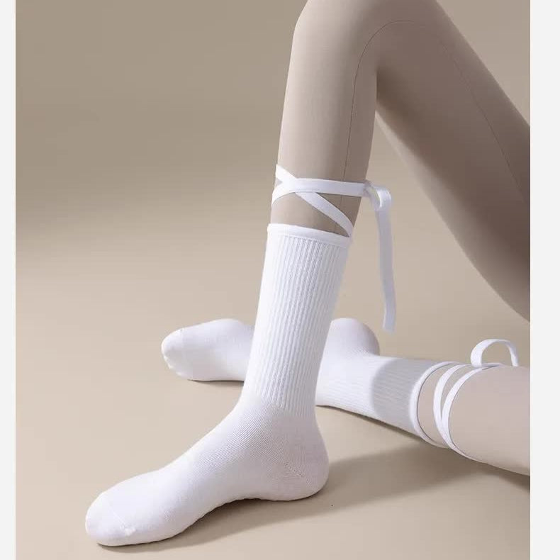 3 Pcs White Non-Slip Yoga Socks with Cross Straps - Cotton Pilates Dance Socks for Women, Lightweight Comfort
