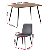1 Artiss Dining Table and 4 Chairs Set Grey Velvet
