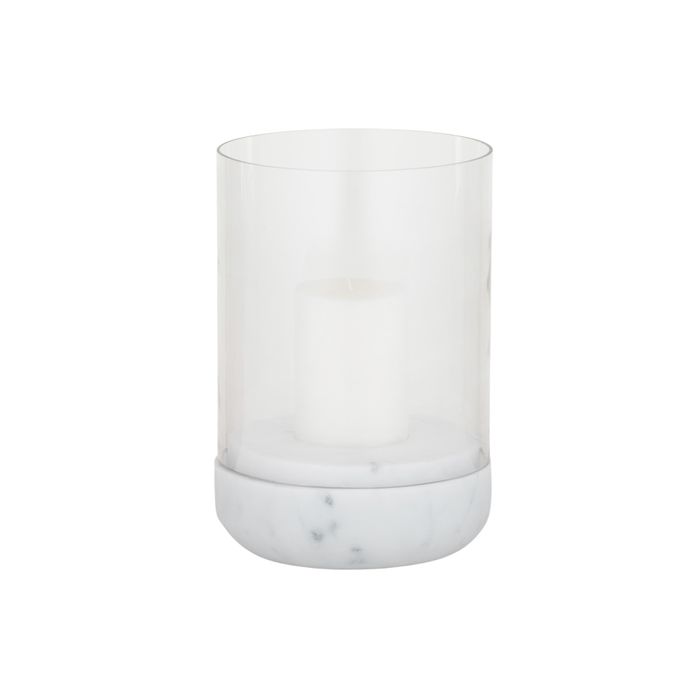 Add the luxurious Nina glass and marble Hurricane Candleholder to your home. Available in Small and Large, a statement piece individually or purchase the pair.