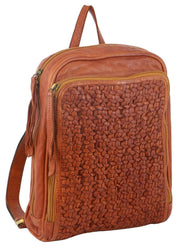 Pierre Cardin Woven Leather Ladies Backpack Bag Travel - Cognac