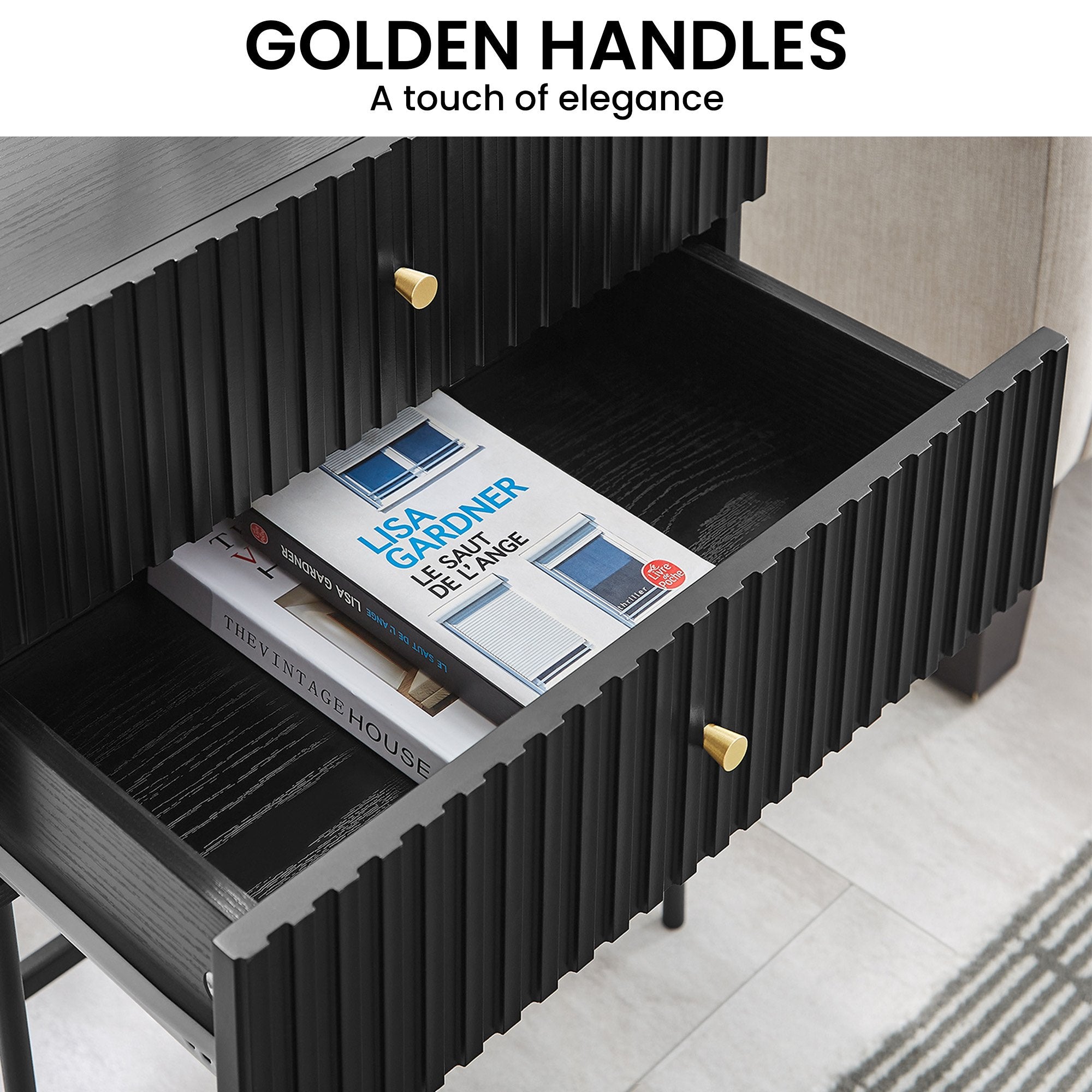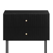 Sarantino Arden Fluted 2-drawer Bedside Table Night Stand - Black